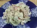 Ensalada de pasta con pavo y salsa de soja EntranteFácil35 min Enviar esta receta a un amigo Imprimir esta página Preguntar al autor Publicar la foto de esta receta Ingredientes 4 90 g de lacitos 1 tomate 240 g de fiambre de pavo 1 manzana troceada 100 g de lechuga 1 tostada de pan para cada uno