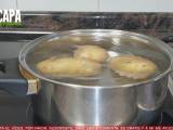 Lo primero de todo será poner a cocer las patatas, para ello, ponemos las patatas en una cazuela con agua y cuando empiece a hervir las dejamos unos 25 minutos más o menos.