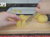 Una vez cocidas las patatas, las enfríanos, las pelamos y las cortamos en trozos medianos más o menos del mismo tamaño.