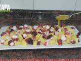 Cuando ya lo tenemos bien mezclado, lo añadimos por encima de la ensalada.