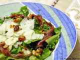 Ensalada de queso burgos y anchoas con vinagreta de fruta