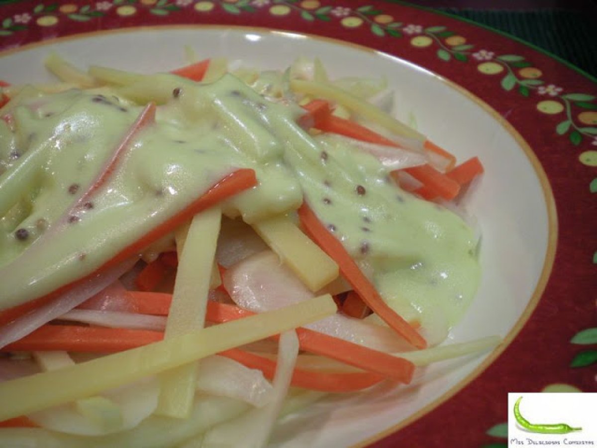 Ensalada suiza AnteriorSiguiente EntranteFácil40 min Enviar esta receta a un amigo Imprimir esta página Preguntar al autor Publicar la foto de esta receta Ingredientes 2 125 g de queso Gruyère 1 cebolleta grande 1 zanahoria grande Sal 1/2 cucharadita de cominos enteros 1 yogur natural 2 cucharadas de mayonesa 1 cucharada de azúcar 1 cucharada de mostaza a la Antigua Aceite de oliva Vinagre