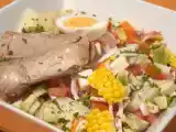 Cuando las altas temperaturas llegan, esta ensalada fría, bien te puede servir como acompañamiento o como entrate. Es muy fácil!