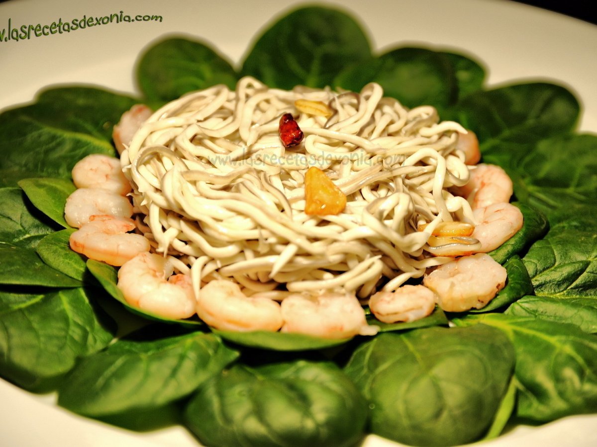Ensalada templada de gulas y espinacas EntranteFácil10 min Enviar esta receta a un amigo Imprimir esta página Preguntar al autor Publicar la foto de esta receta Ingredientes 1 * 250 gr de Gulas (1 bandejita) * 100 gr de Brotes de Espinacas * 100 gr de gambas peladas * 2 ajos, 1 guindilla o cayena y sal