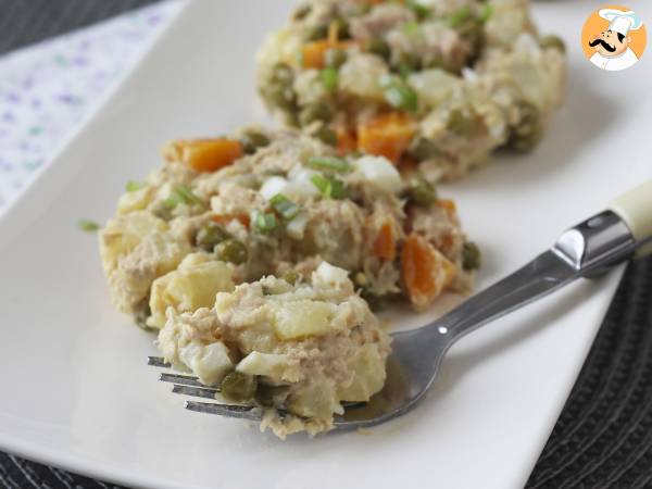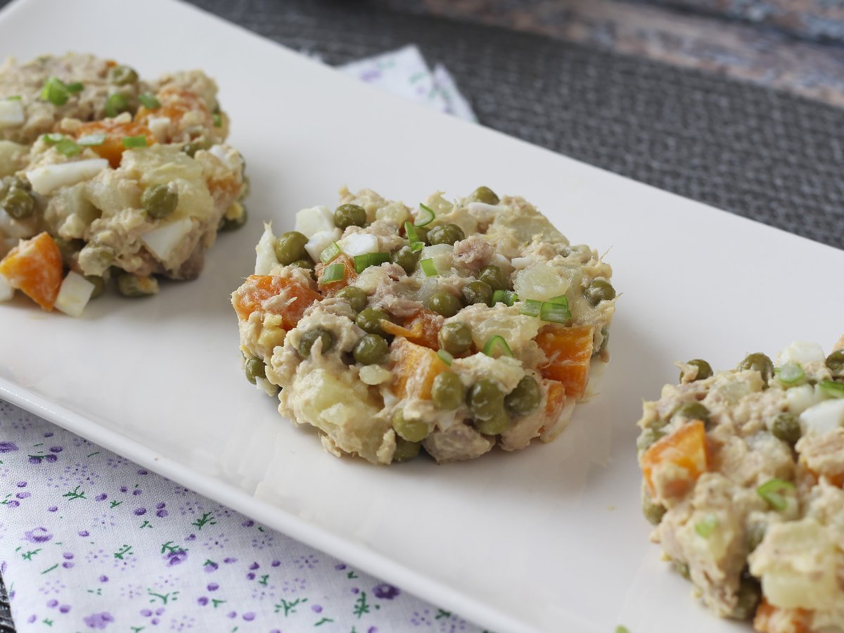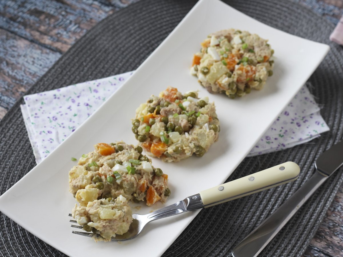 Si hay una ensalada que reina en los hogares durante el verano y los días de calor, esa es, sin duda, la ensaladilla rusa (que de rusa solo tiene el nombre, todo sea dicho). Esta ensalada, símbolo de frescura y versatilidad, puede servirse como entrante, aperitivo o incluso como plato principal. Asimismo, permite innumerables variaciones de acuerdo a los gustos y preferencias de cada comensal. En esta oportunidad, hemos decidido preparar una mayonesa casera para realzar aún más su frescura y suavidad. ¡No dudes en probarla y comprobarás por qué esta ensaladilla goza de tanta popularidad en España y en el resto del mundo!