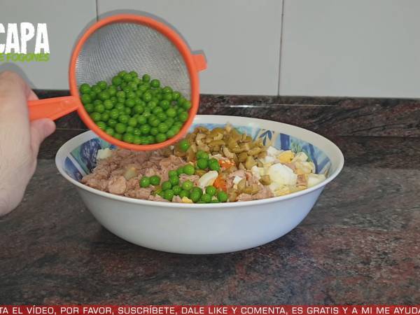 Muy buenas discapas y discapos hoy vamos a preparar una riquísima ensaladilla rusa. La ensaladilla rusa es un entrante frío compuesto por patatas, zanahoria, huevos cocidos, guisantes, atún y aceitunas, todo picado en cubos pequeños y mezclado con mayonesa. Se prepara cocinando los ingredientes por separado y luego combinándolos para lograr una textura homogénea. Su sabor es suave y cremoso, con un toque salado y fresco, ideal para disfrutar como aperitivo o acompañamiento.