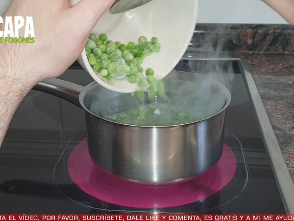 Ahora vamos a cocer unos guisantes, yo voy a utilizar unos guisantes congelados.