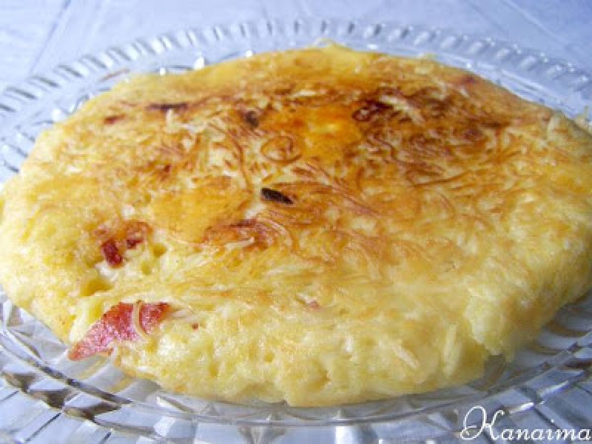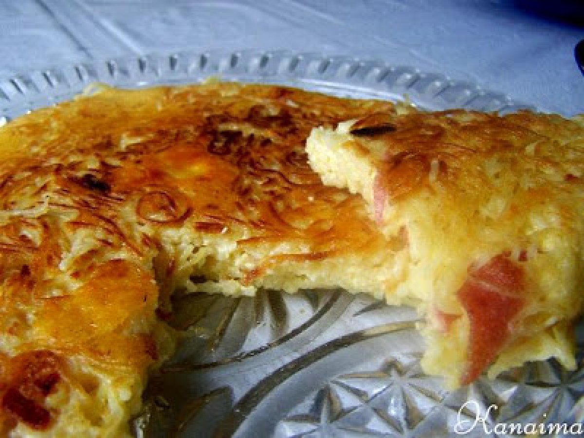 Frittata de pasta con queso y salami AnteriorSiguiente EntranteFácil40 min Enviar esta receta a un amigo Imprimir esta página Preguntar al autor Publicar la foto de esta receta Una receta sabrosa que puedes acompañar con salsa de tomate. Ingredientes 4 Pasta larga quesos rallados: mozarella y enmental 3 huevos batidos sal pimienta salami en trocitos (también puedes usar jamón)
