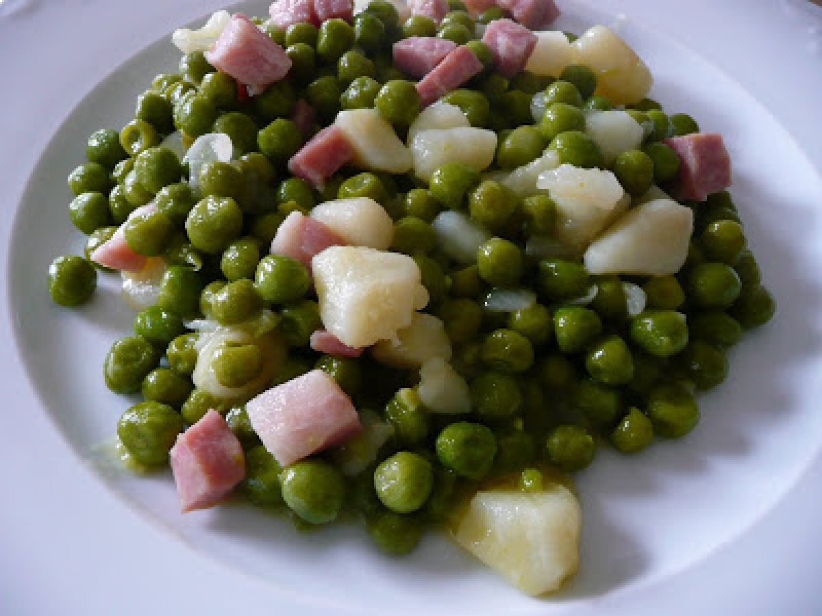 Guisantes con patatas y bacon ahumado/peas, potatoes and bacon