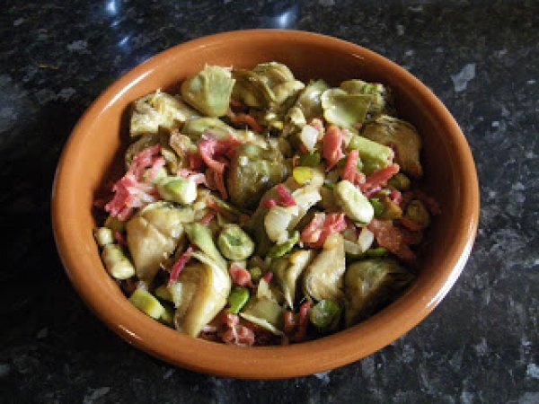 Habas y alcachofas con hilos jamón serrano espuña. EntranteFácil45 min196 Kcal Enviar esta receta a un amigo Imprimir esta página Preguntar al autor Publicar la foto de esta receta Ingredientes 4 200 g de habas 5 alcachofas 1 paquete de hilos de jamón curado Espuña 1/4 de cebolla aceite de oliva sal