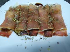 Higos con jamón AnteriorSiguiente EntranteFácil6 min Enviar esta receta a un amigo Imprimir esta página Preguntar al autor Publicar la foto de esta receta Ingredientes 1 1/4 kg Higos negros frescos 150g- 200g Jamón Ibérico Aceite de Oliva Virgen Extra Vinagre de Jerez ó Balsámico de Módena Hierbas provenzales