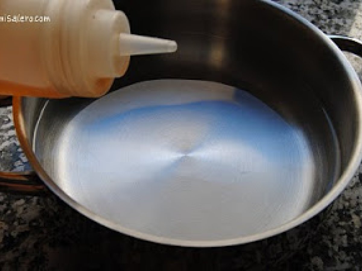 - En una olla con agua añadimos un chorreón generoso de vinagre y ponemos a hervir.