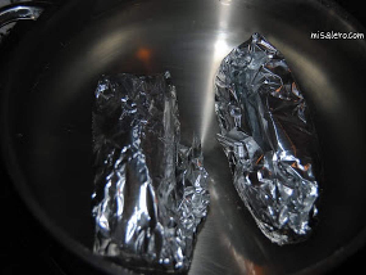 - Cogemos las huevas y las envolvemos en papel de plata.