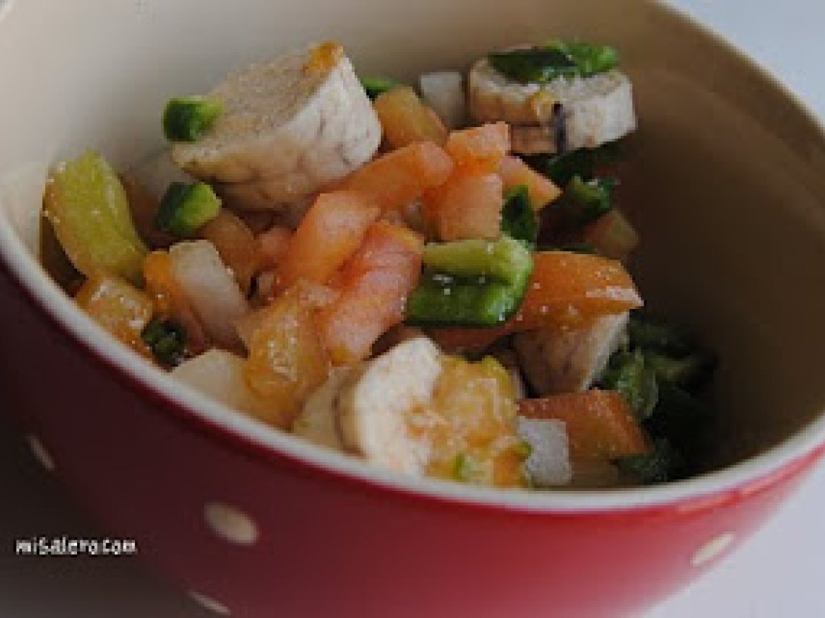 - Hacemos un aliño bien rico con el resto de los ingredientes y cortamos las huevas en rodajas.