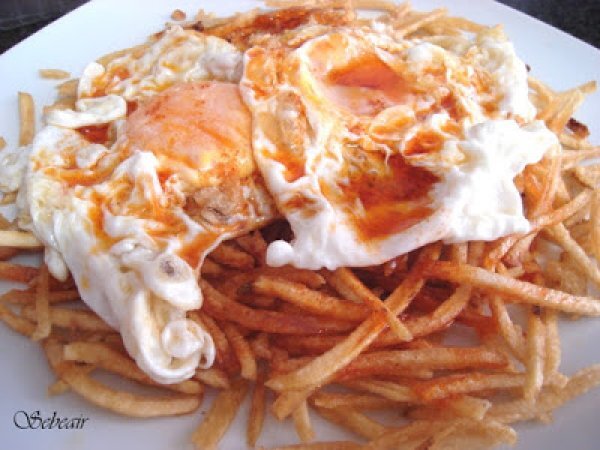 Huevos fritos estrellados cabreados (tradicional) + santo reino AnteriorSiguiente EntranteFácil35 min442 Kcal Enviar esta receta a un amigo Imprimir esta página Preguntar al autor Publicar la foto de esta receta Ingredientes 2 2 patatas grandes cortadas estilo paja Aceite de oliva y sal 4 huevos Aceite de oliva Pimentón picante Tabasco Costo estimado: 2.51Euros€ (1.26€/porción)