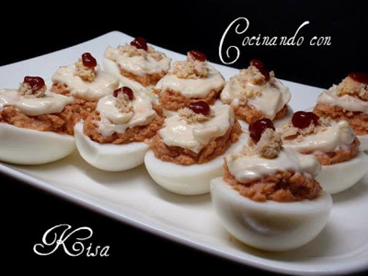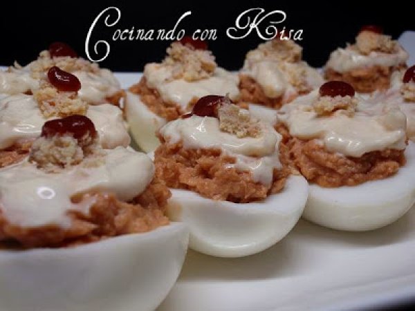 Huevos rellenos (fussioncook) vota ahora AnteriorSiguiente EntranteFácil50 min275 Kcal Enviar esta receta a un amigo Imprimir esta página Preguntar al autor Publicar la foto de esta receta Ingredientes 3 5 huevos 2 vasos medidores de agua 2 latas pequeñas de atún en escabeche 80 g de tomate frito Mahonesa Costo estimado: 4.66Euros€ (1.55€/porción)