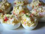 Huevos rellenos gratinados EntranteFácil35 min122 Kcal Enviar esta receta a un amigo Imprimir esta página Preguntar al autor Publicar la foto de esta receta Ingredientes 6 4 huevos un chorrito de tomate taquitos de jamón serrano atún en aceite un diente de ajo queso rallado Costo estimado: 3.68Euros€ (0.61€/porción)