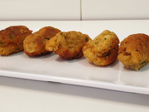 Pasados unos 30 minutos, cogemos porciones con la ayuda de una cuchara y con las manos bien limpias le vamos dando forma de croqueta.