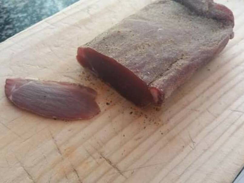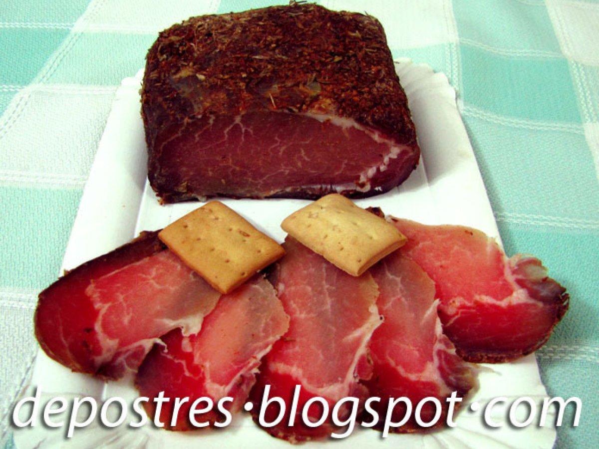 Lomo de cerdo curado a la sal AnteriorSiguiente EntranteMedio30 min Enviar esta receta a un amigo Imprimir esta página Preguntar al autor Publicar la foto de esta receta Un aperitivo de lo más exquisito Ingredientes 8 un trozo de lomo de cerdo de 1 kg 200 gr aproximadamente 500 gr de sal gruesa 375 gr de azúcar moreno Para el adobo: 2 cucharadas de orégano 2 cucharadas de ajo en polvo 2 cucharadas de pimentón 1 cucharada de romero 1 cucharada de tomillo 1 cucharada de pimienta