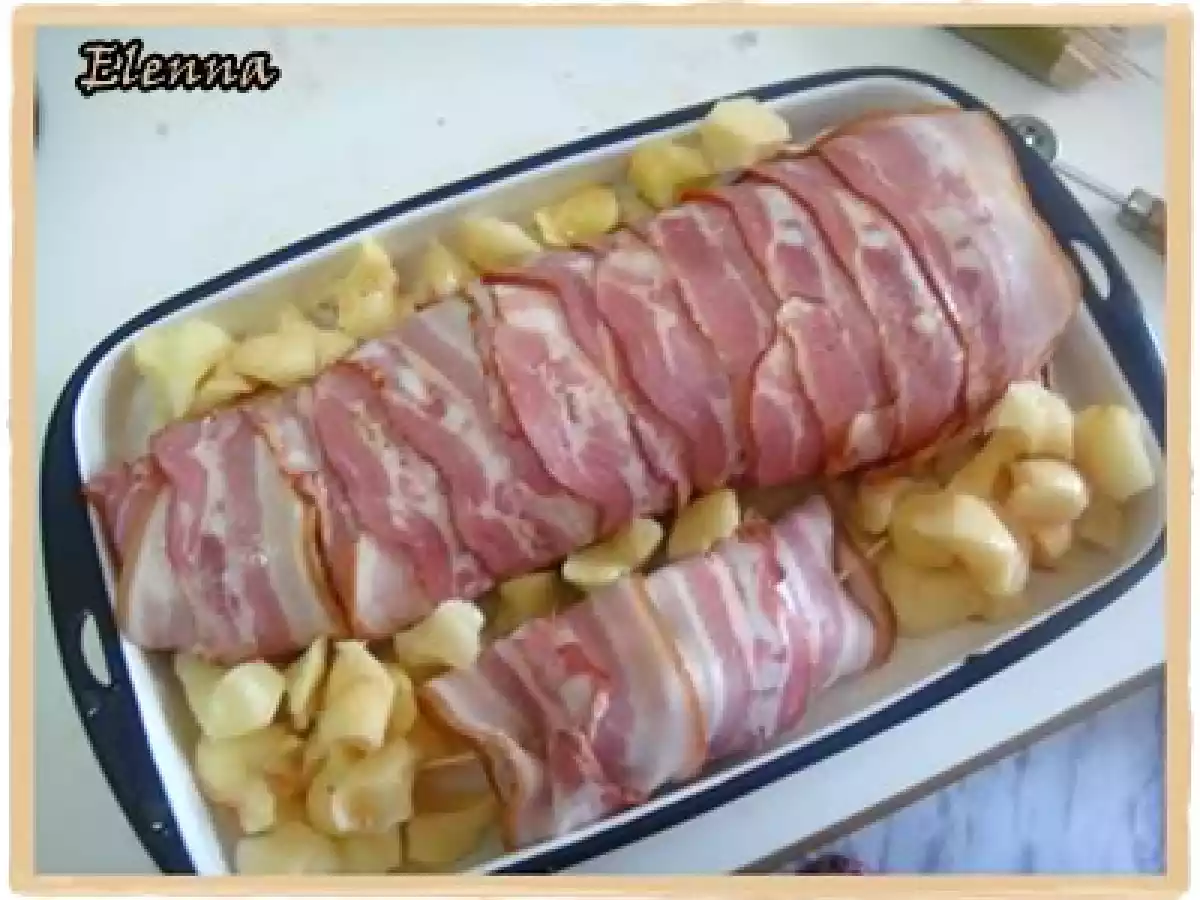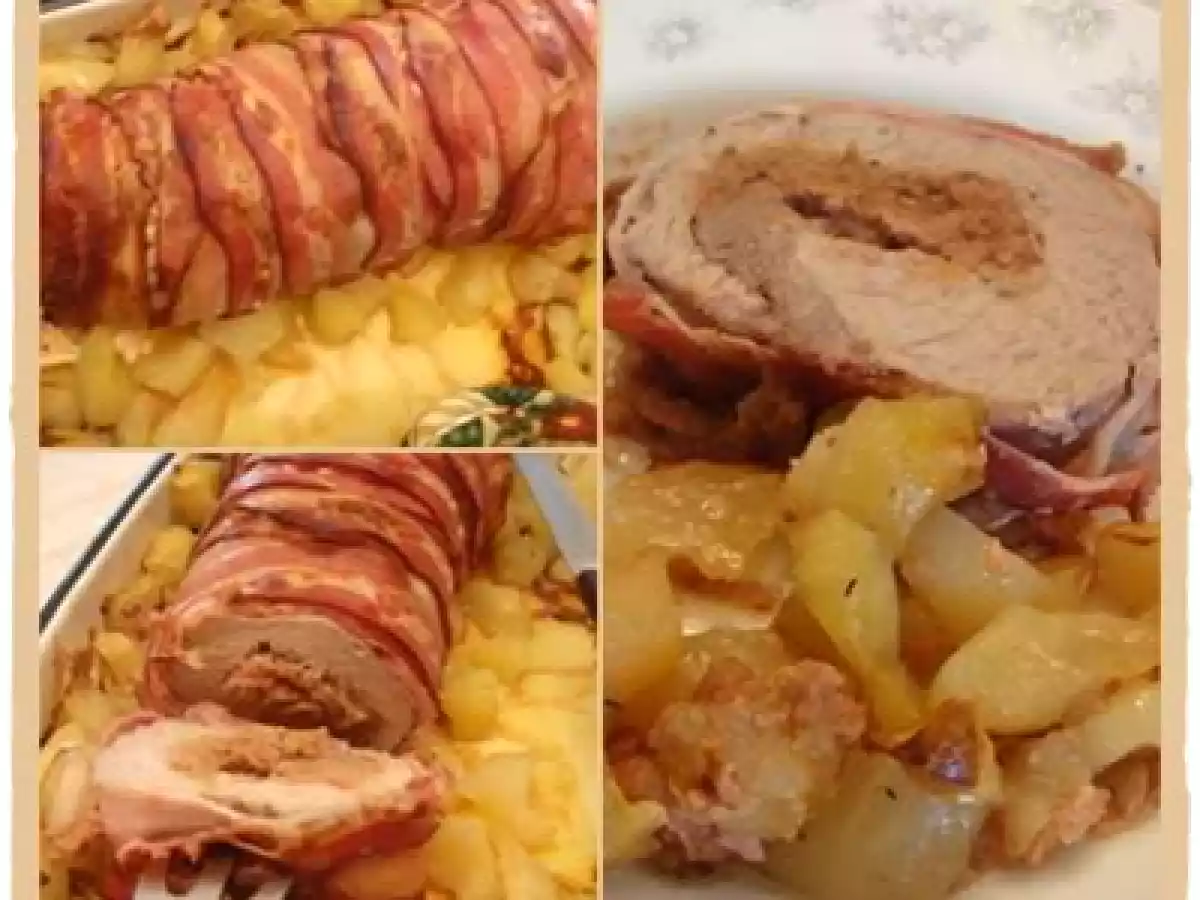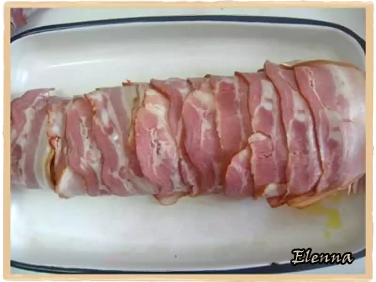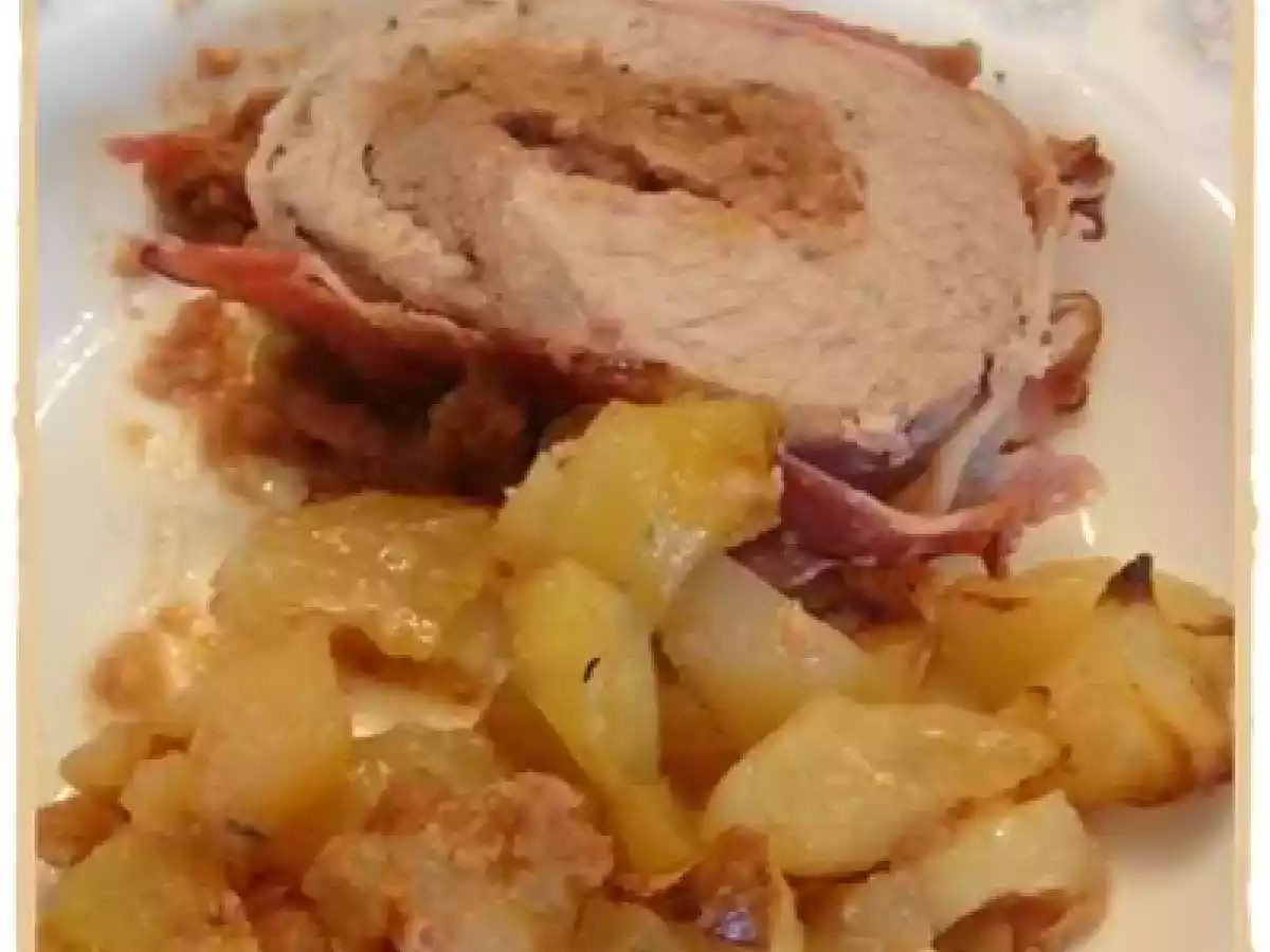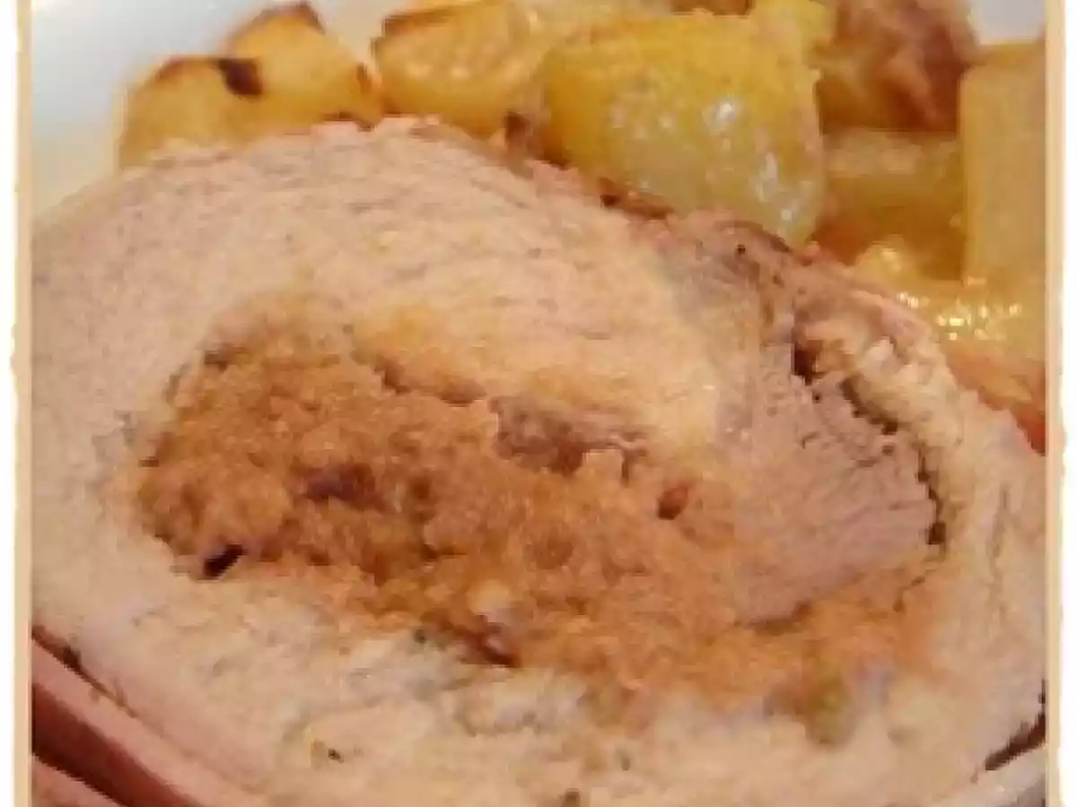 Lomo relleno de paté y almendras AnteriorSiguiente EntranteFácil1 h 10 m Enviar esta receta a un amigo Imprimir esta página Preguntar al autor Publicar la foto de esta receta He aquí una receta sabrosa y rica. Ingredientes 4 1 lomo de cerdo de 1 kg aprox. 4 cucharadas de paté de cerdo ibérico 100 g. de almendras fritas Sal,pimienta y hierbas provenzales Bacon (suficiente para envolver el lomo) Aceite de oliva 1 chorro de brandy Patatas para acompañar