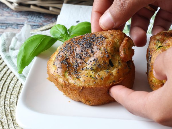 Perfectos para el desayuno, el táper o un picoteo saludable, estos muffins salados se preparan en un momento con ingredientes sencillos y el resultado es jugoso, aromático y muy sabroso. Solo necesitas calabacín rallado, huevos, skyr o yogur griego, parmesano y un toque de albahaca fresca. Todo mezclado en un bol y cocinado en la freidora de aire, sin mantequilla, ni complicaciones.