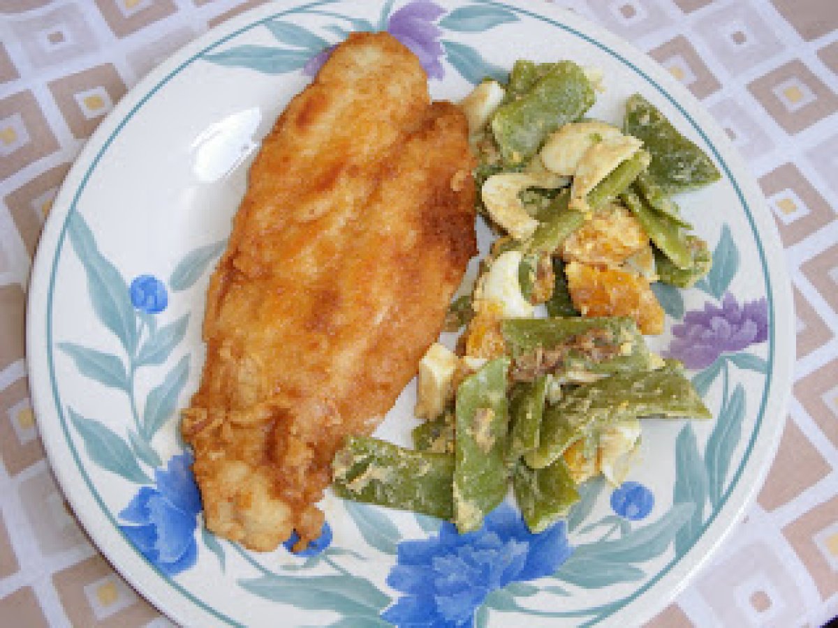 Panga al limón con ensalada de judías con huevos y naranja. EntranteFácil45 min565 Kcal Enviar esta receta a un amigo Imprimir esta página Preguntar al autor Publicar la foto de esta receta Ingredientes 2 2 filetes de panga. 1 limón. harina. 300 gr. de judías verdes planas. 2 huevos. 1 naranja. 1 diente de ajo. aceite. vinagre de módena. sal. Costo estimado: 4.31Euros€ (2.16€/porción)