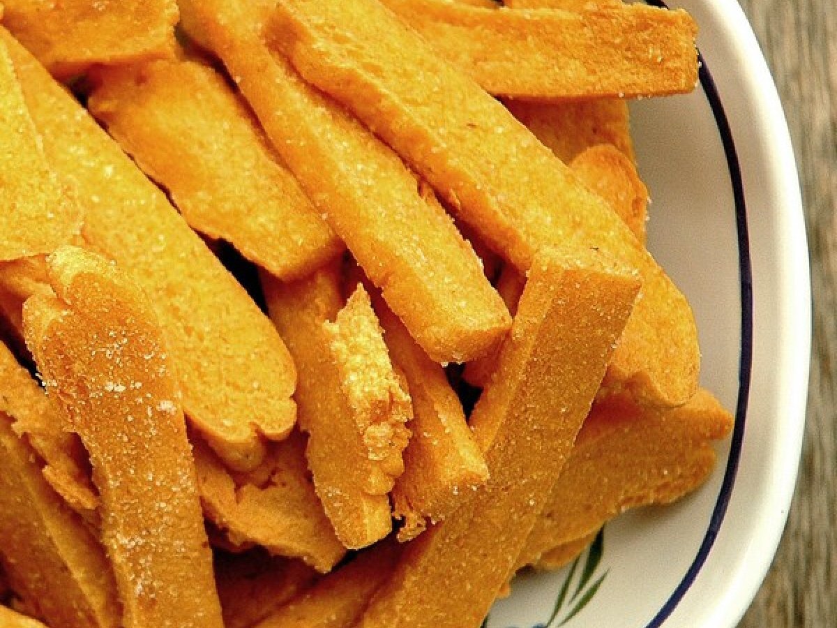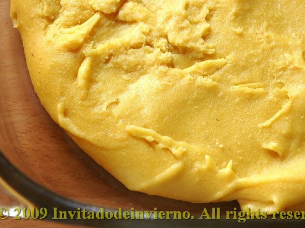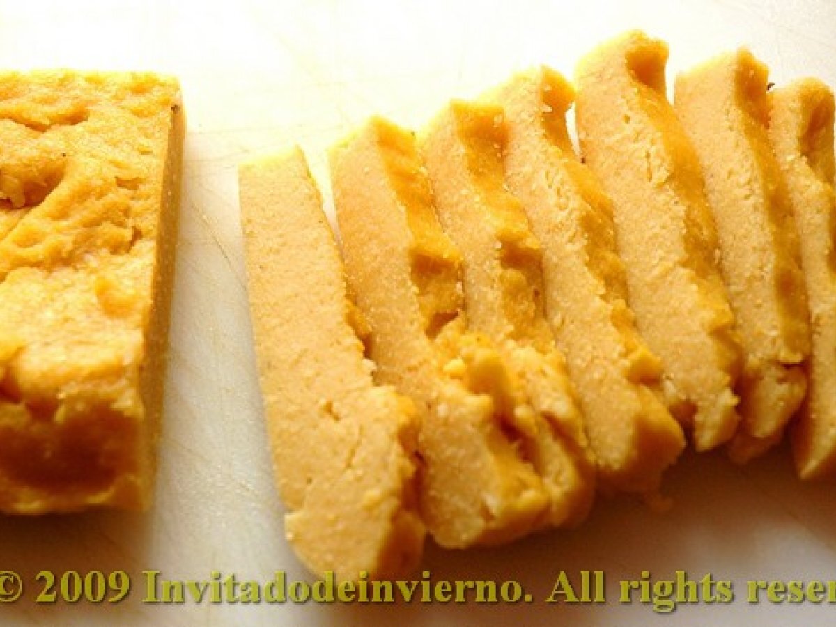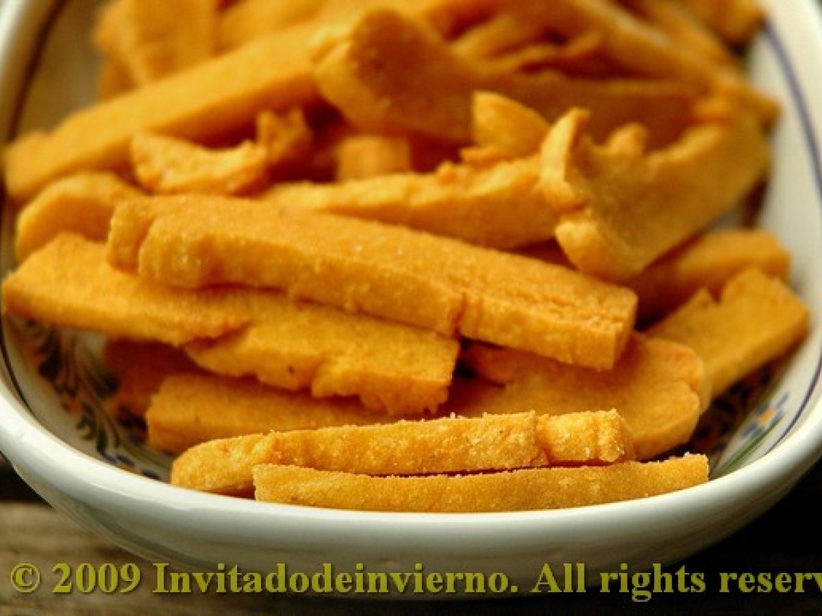 Panizas gaditanas AnteriorSiguiente EntranteFácil40 min681 Kcal Enviar esta receta a un amigo Imprimir esta página Preguntar al autor Publicar la foto de esta receta Ingredientes 2 250 g de harina de garbanzo 750 ml de agua 1 cucharadita de sal buena Un pellizco de cúrcuma (esto no lo incluye la receta original, pero lo puse yo para aumentar el color amarillo) Aceite para freír Costo estimado: 0.8Euros€ (0.4€/porción)