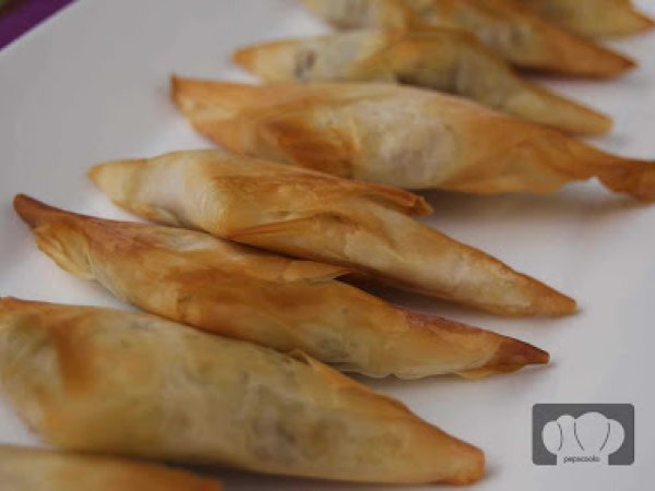 Pasta filo rellena de tres variedades AnteriorSiguiente EntranteFácil45 min126 Kcal Enviar esta receta a un amigo Imprimir esta página Preguntar al autor Publicar la foto de esta receta Pasta filo rellena de tres variedades Ingredientes 6 Pasta filo Mantequilla (fundida) Preparación 1: Queso Roquefort cebolleta Setas Preparación 2: Queso rulo de cabra Piñones Vino Pedro Ximenez (o cualquier otro vino dulce como el Oporto) Preparación 3: Jamón York Queso