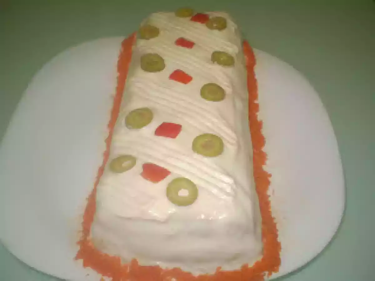 Pastel de atún AnteriorSiguiente EntranteFácil35 min297 Kcal Enviar esta receta a un amigo Imprimir esta página Preguntar al autor Publicar la foto de esta receta Magnífico ingreso fácilmente realizable Ingredientes 4 6 Rebanadas de pan de molde 2 huevos duros 2Latas de atún Tomate frito Mayonesa Lechuga jamón york Costo estimado: 7.08Euros€ (1.77€/porción)