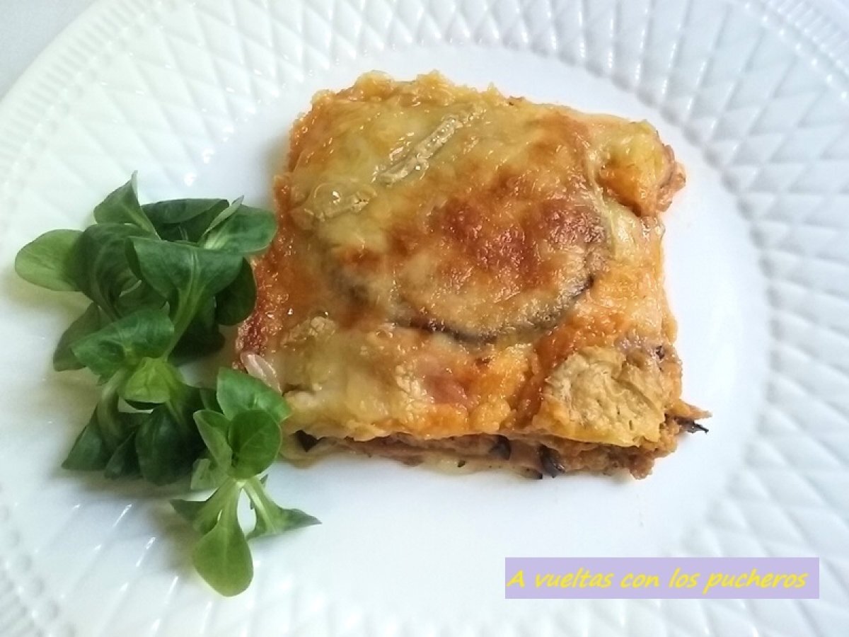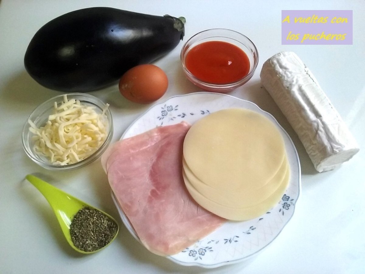Pastel de berenjena, jamón y queso - microondas