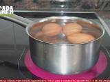 Lo primero que haremos será poner 3 huevos a cocer, para ello ponemos un cazo con agua a hervir y cuando empiece a hervir los dejamos 10 minutos y después los sacamos del fuego.