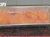 Y ahora vamos a colocar unas lonchas de salmón ahumado, procurando que quede lo mejor repartido posible.