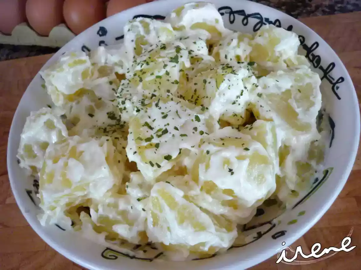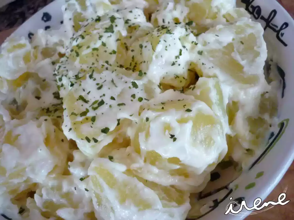 Patatas con mayonesa de ajo AnteriorSiguiente EntranteFácil35 min483 Kcal Enviar esta receta a un amigo Imprimir esta página Preguntar al autor Publicar la foto de esta receta Ingredientes 5 1 kg de patatas Agua Aceite Sal 2 huevos 2 dientes de ajo 1 vaso y medio de aceite de girasol Un poquito de sal El zumo de medio limón mediano Perejil picado para decorar Costo estimado: 2.55Euros€ (0.51€/porción)