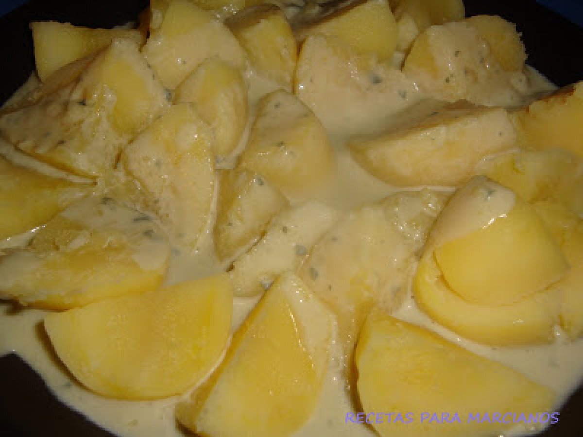 Patatas con salsa al roquefort EntranteFácil55 min98 Kcal Enviar esta receta a un amigo Imprimir esta página Preguntar al autor Publicar la foto de esta receta Ingredientes 4 Patatas pequeñas hervidas Sal Un cuña de queso roquefort Un chorrito de nata para cocinar Costo estimado: 1.76Euros€ (0.44€/porción)