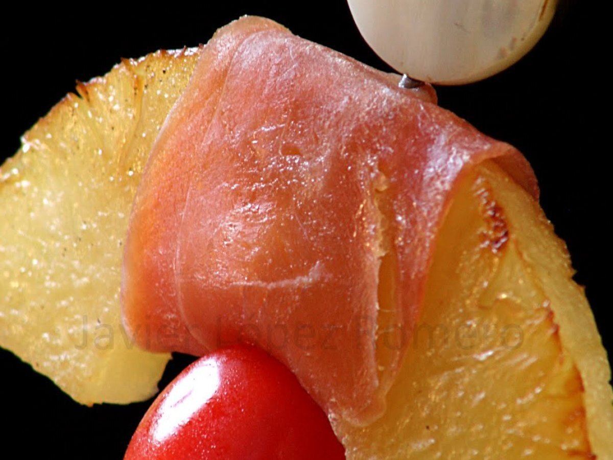 Pincho de piña asada con jamón EntranteFácil20 min Enviar esta receta a un amigo Imprimir esta página Preguntar al autor Publicar la foto de esta receta Ingredientes 1 Una lata de rodajas de piña en su jugo, unas lonchas extrafinas de jamón curado de bodega, aceite de oliva virgen extra, una pizca de sal, tomates cherry Costo estimado: 1.62Euros€ (1.62€/porción)