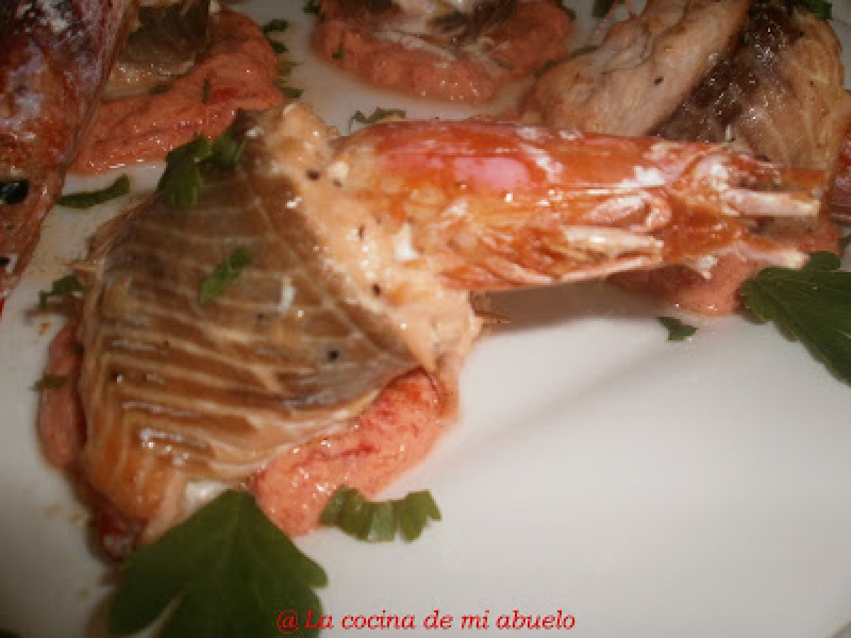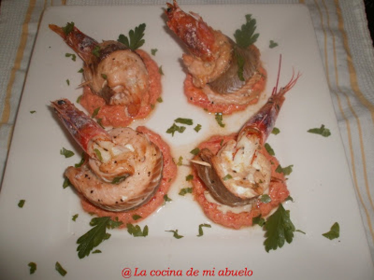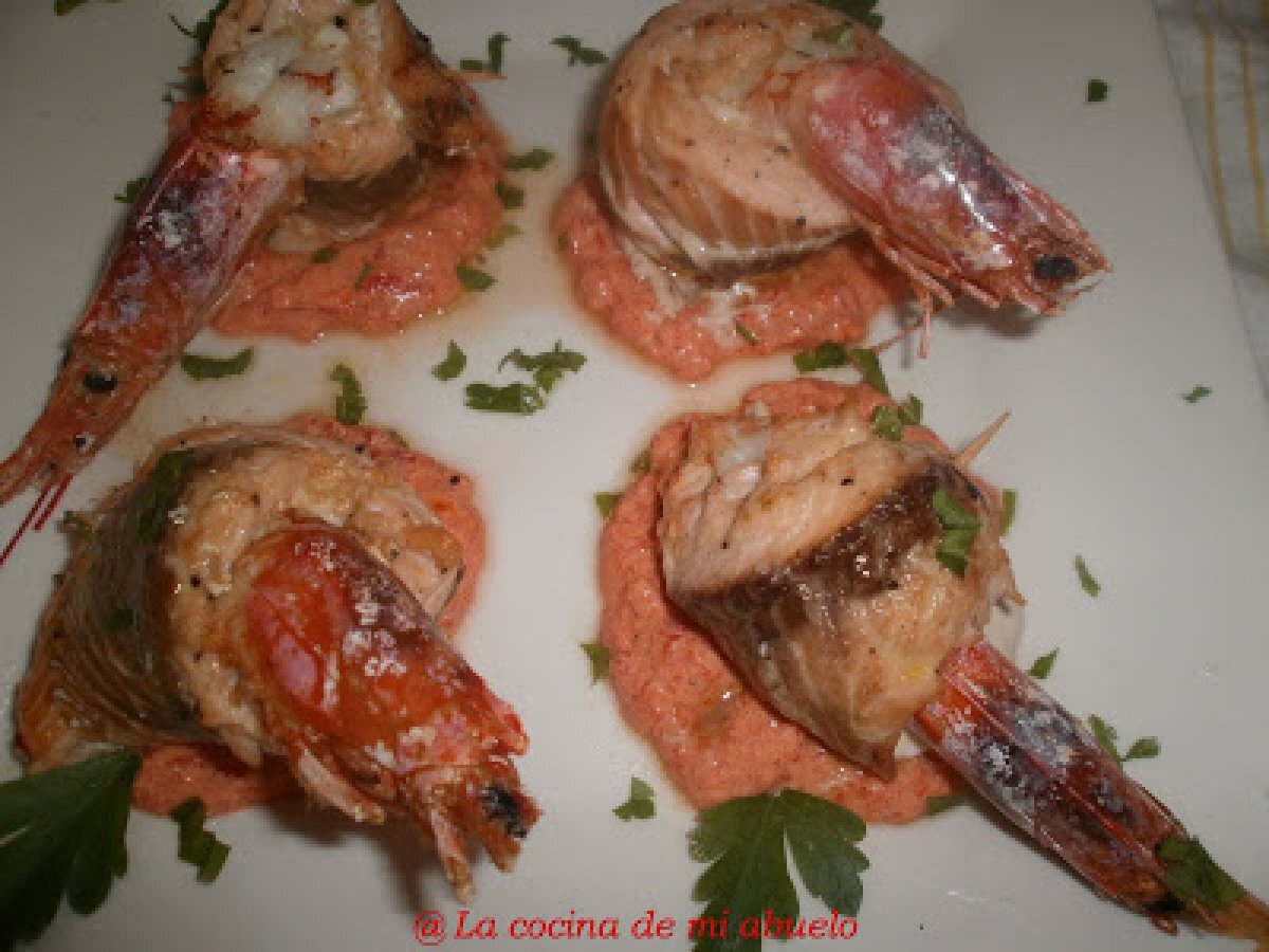 Popietas de salmón con langostinos vota ahora AnteriorSiguiente EntranteFácil45 min113 Kcal Enviar esta receta a un amigo Imprimir esta página Preguntar al autor Publicar la foto de esta receta Ingredientes 4 Filetes de salmón 1 langostino por popieta pimienta negra sal pimientos asados queso batido aceite de oliva Costo estimado: 3.18Euros€ (0.79€/porción)