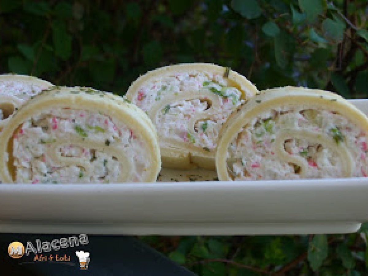 Rollitos de crepes con cangrejo y ensalada AnteriorSiguiente EntranteFácil45 min259 Kcal Enviar esta receta a un amigo Imprimir esta página Preguntar al autor Publicar la foto de esta receta Ingredientes 3 leche harina 1 huevo 1 pizca de sal un poquito de perejil picado palitos de cangrejo 1 tarrina de queso philadelphia lechuga picada hierbas aromáticas
