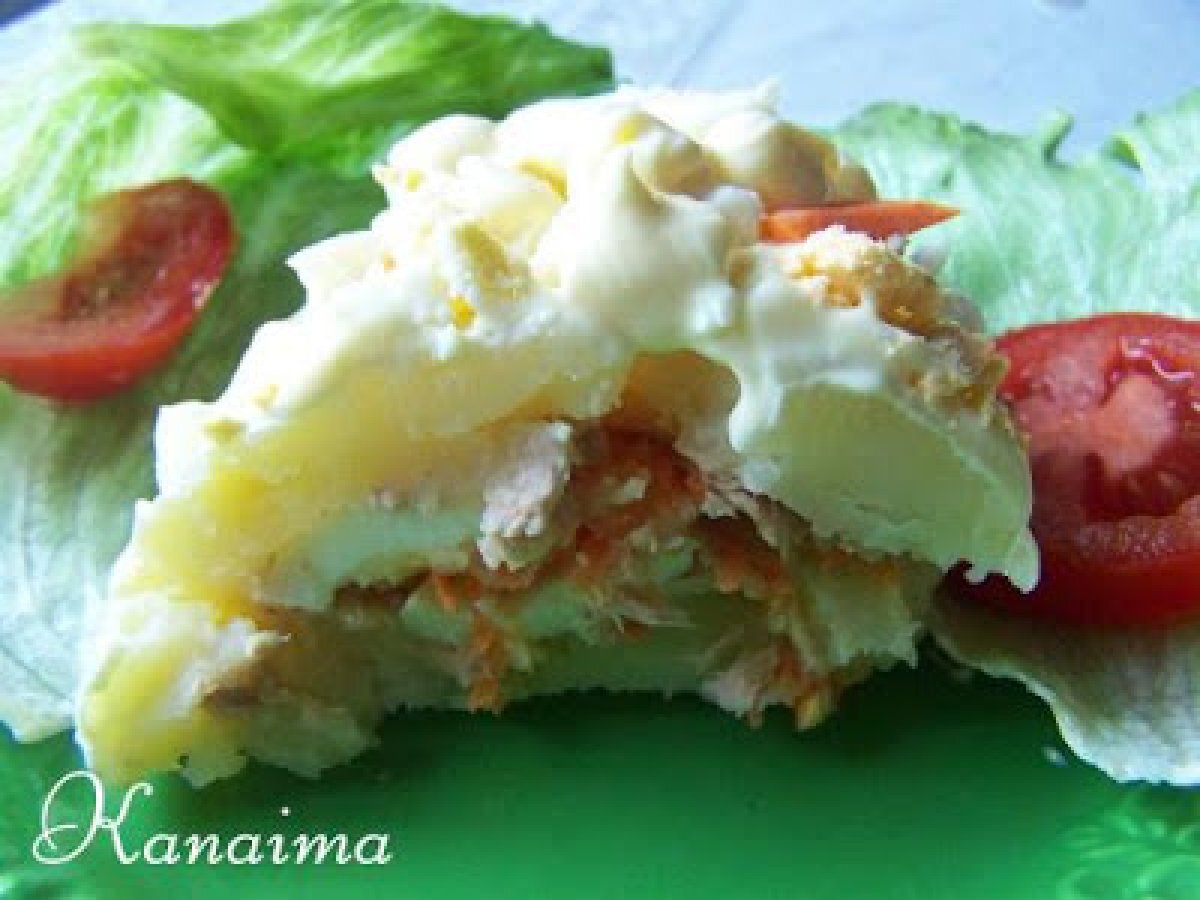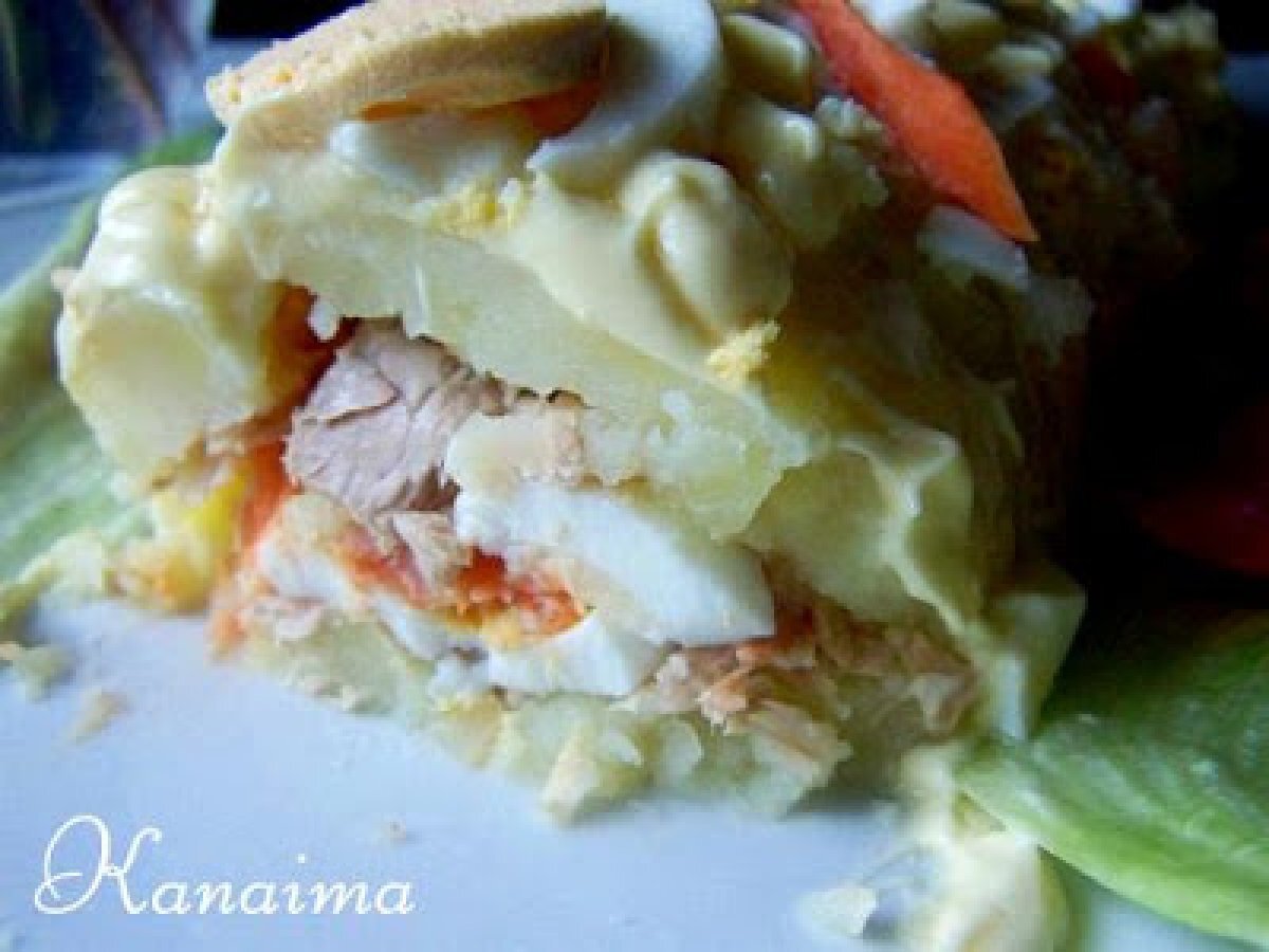 Rollo light de papas con atún AnteriorSiguiente EntranteFácil1 hora Enviar esta receta a un amigo Imprimir esta página Preguntar al autor Publicar la foto de esta receta Ingredientes 4 4 o 5 papas grandes 1 lata de atún en agua Cebolla picadita Zanahoria rallada 3 huevos duros Mayonesa Light Sal 1 chorrito de salsa de tomate Ketchup 1 cucharada de queso parmesano