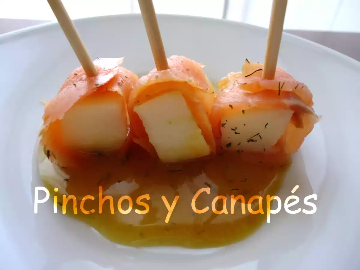 Salmón ahumado y manzana EntranteFácil6 min520 Kcal Enviar esta receta a un amigo Imprimir esta página Preguntar al autor Publicar la foto de esta receta Ingredientes 3 2 manzanas 250 gr de salmón ahumado en lonchas Salsa de eneldo: 1 yema 1 cucharada de mostaza dulce 1 cucharada de azúcar moreno 1 cucharada de eneldo picado 100 ml de aceite de oliva virgen extra sal Costo estimado: 14.5Euros€ (4.83€/porción)