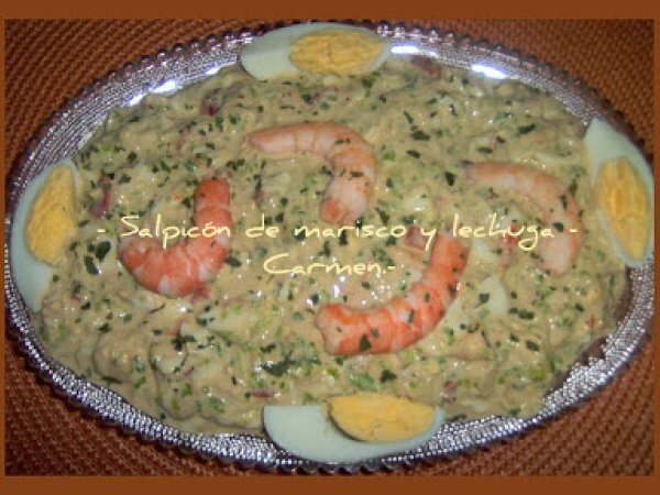 - salpicón de marisco - EntranteFácil25 min Enviar esta receta a un amigo Imprimir esta página Preguntar al autor Publicar la foto de esta receta Otra manera de disfrutar de los mariscos. Ingredientes 2 Langostinos centollo lechuga mahonesa perejil huevo cocido cebolleta ketchup sal