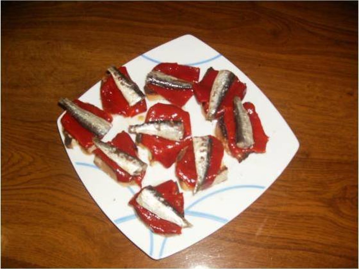 Tapa de sardinas AnteriorSiguiente EntranteFácil8 min159 Kcal Enviar esta receta a un amigo Imprimir esta página Preguntar al autor Publicar la foto de esta receta Ingredientes 2 Sardinas en aceite pimientos del piquillo caramelizados y pan Costo estimado: 2.13Euros€ (1.07€/porción)