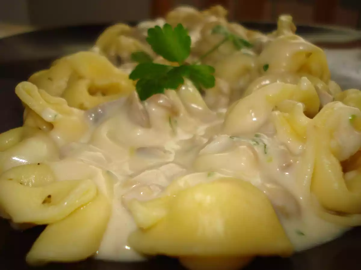 Tortelini de carne y queso al rous de champiñon AnteriorSiguiente EntranteMedio45 min547 Kcal Enviar esta receta a un amigo Imprimir esta página Preguntar al autor Publicar la foto de esta receta Ingredientes 4 125gr bolsa de Tortelini de carne 125gr bolsa de Tortelini de queso 125gr de harina 6 cucharadas de aceite de oliva un puerro 2 latas pequeñas de champiñon laminado 1/4 litro de leche Costo estimado: 7.77Euros€ (1.94€/porción)