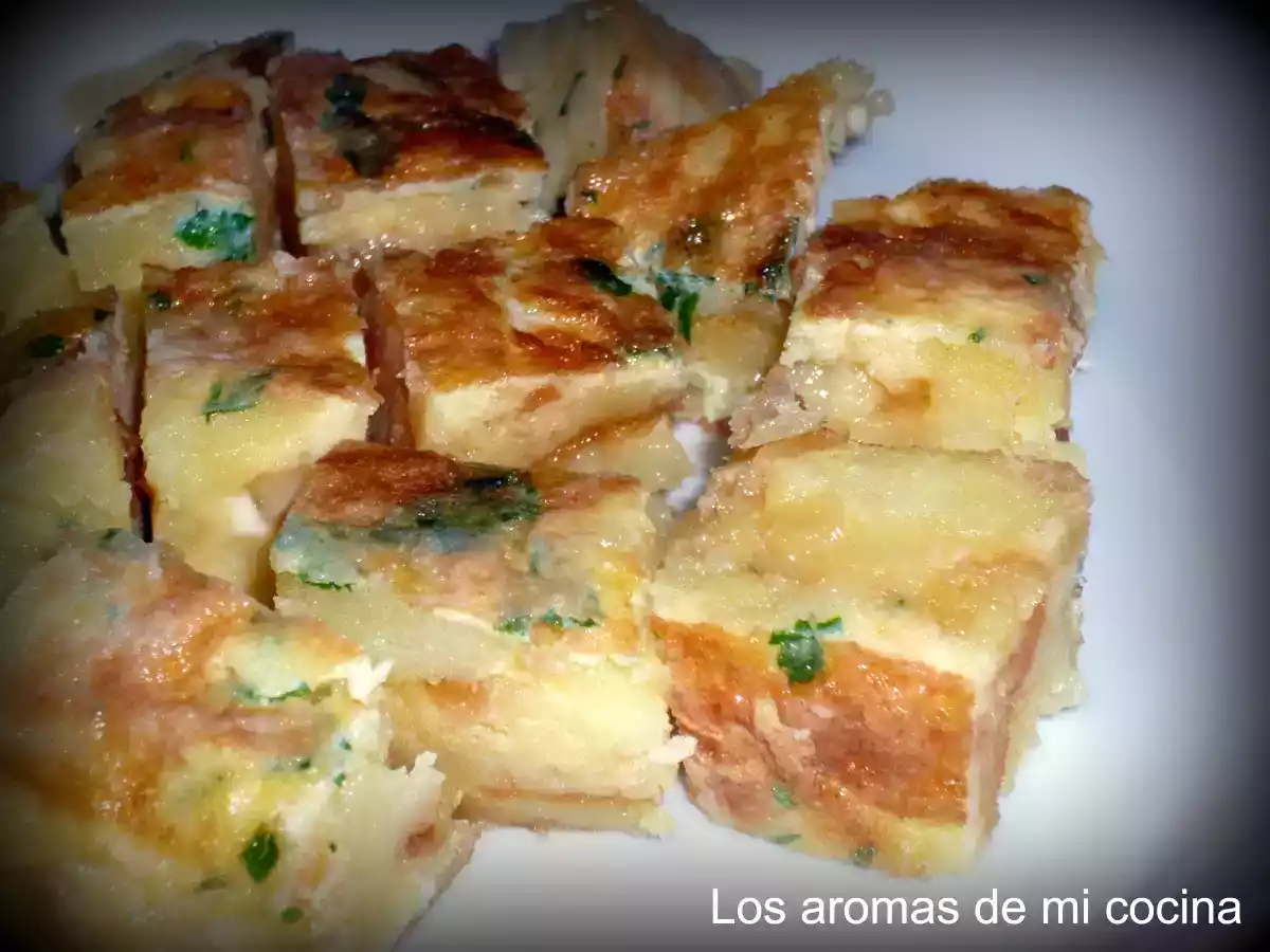 Tortilla de patatas,ajo y perejil AnteriorSiguiente EntranteMedio25 min57 Kcal Enviar esta receta a un amigo Imprimir esta página Preguntar al autor Publicar la foto de esta receta Ingredientes 4 Patatas Huevos Ajos Perejil fresco Costo estimado: 0.58Euros€ (0.14€/porción)