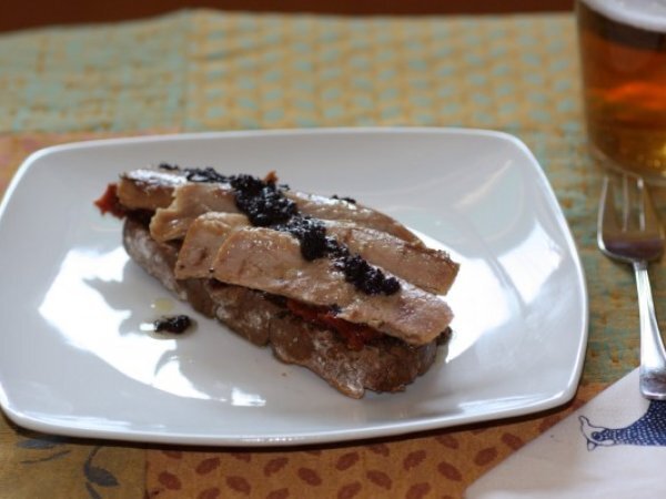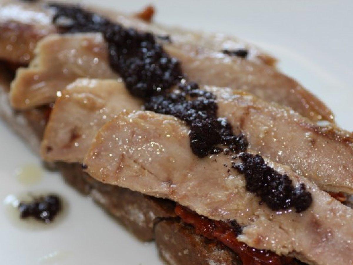 Tosta de ventresca de bonito y tomate seco rehidratado