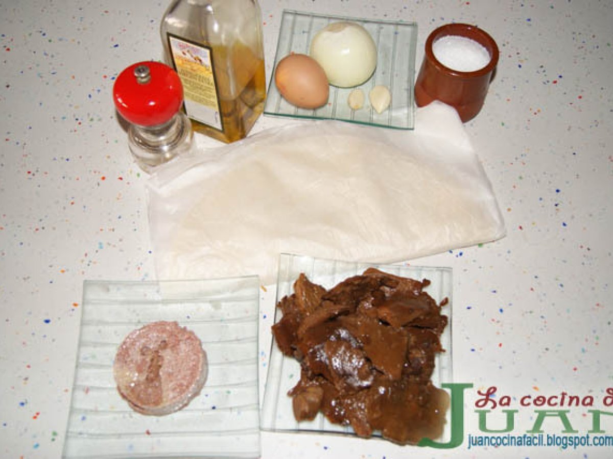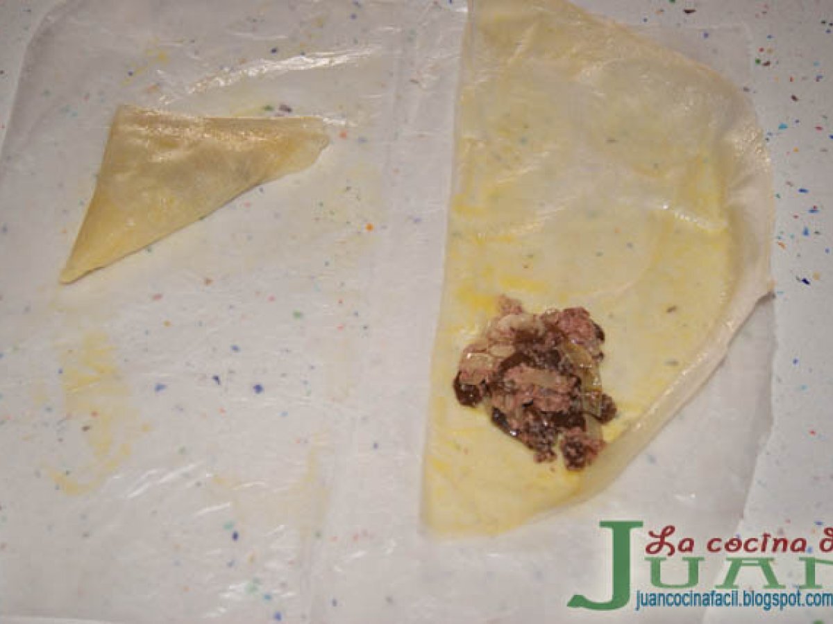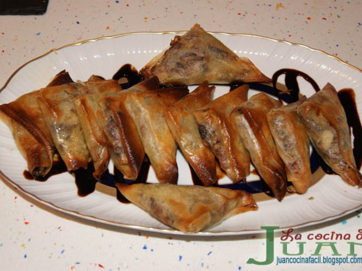 Combinacion maravillosa de setas, paté envuelto en una crujiente pasta filo.