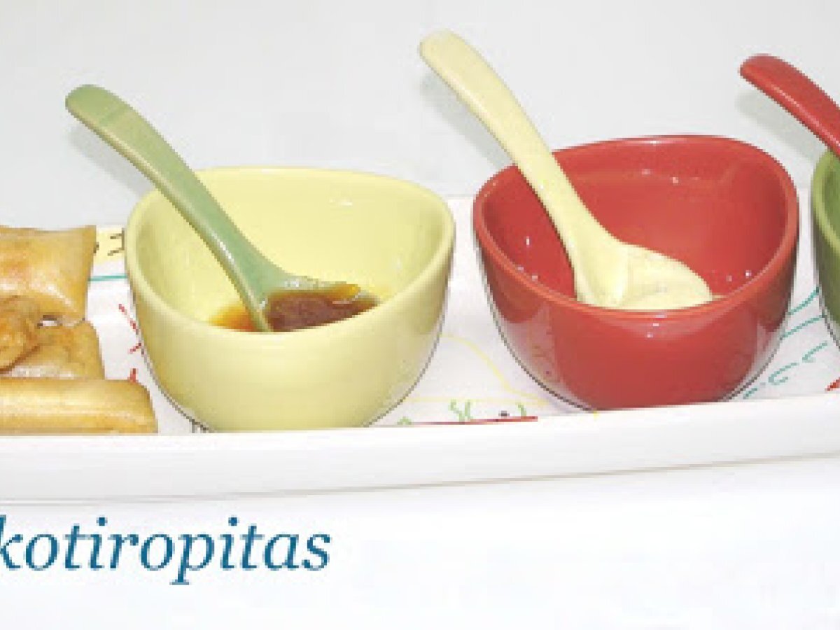 Un trabalenguas muy sabroso spanakotiropita de queso feta EntranteFácil50 min373 Kcal Enviar esta receta a un amigo Imprimir esta página Preguntar al autor Publicar la foto de esta receta Ingredientes 4 Un bloque de queso feta Láminas de Pasta filo ó pasta brie u hojas de brick Orégano Aceite de oliva Pimentón dulce Salsa tzatziki Salsa chutney Costo estimado: 3.23Euros€ (0.81€/porción)