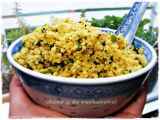Ensalada de arroz con pollo, calabacín, piñones y vinagre balsámico