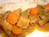 Ingredientes: INGREDIENTES para 4 personas 1 kg de carne magra de cerdo 200 grms. de arroz 2 cebollas tiernas 2 zanahorias medianas 250 grms. de judías verdes o...