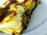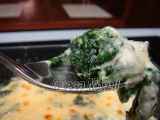 Gratinado de tortillas con jamón, espinacas y mozzarella, al estilo crinkle cake
