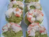 Ingredientes: 12 langostinos frescos 1 pizca de aceite de oliva virgen Sal y pimienta Para el guacamole: 2 aguacates maduros 2 tomate muy rojos pero duritos 1...